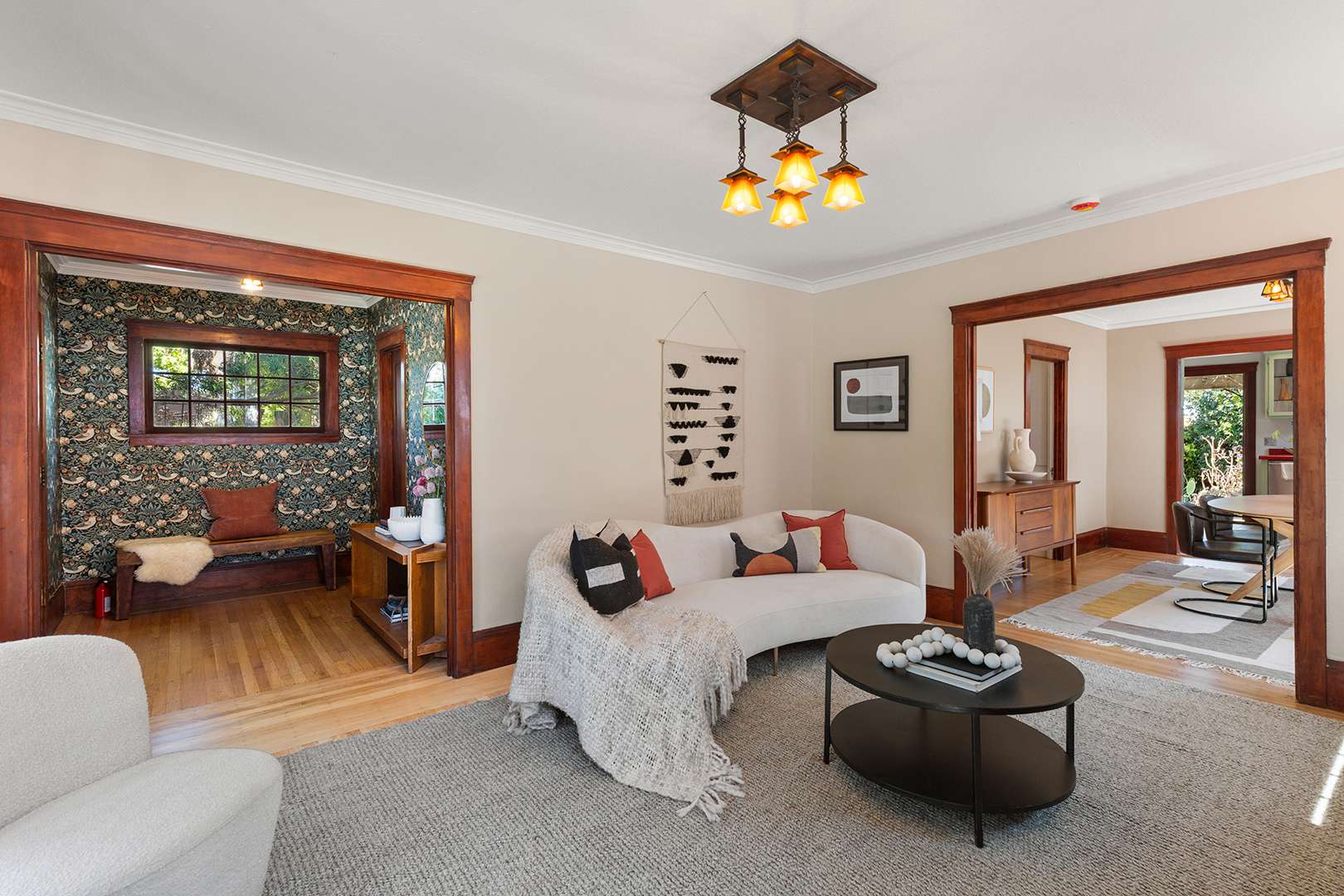 Tucked back on a quiet street, this 2BR/1BA Craftsman bungalow is not just a home but a true sanctuary. It exudes pride of ownership, with details carefully preserved and enhanced to honor its Arts & Crafts roots. Period details abound: built-in bookshelves, wood trim and doors, picture rails, and gleaming hardwood floors.