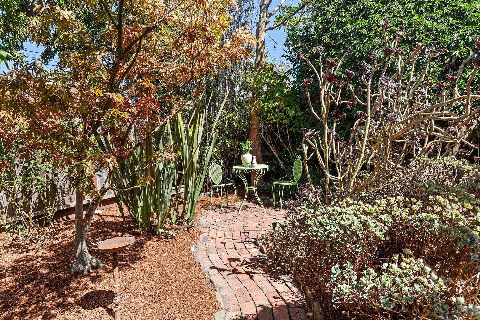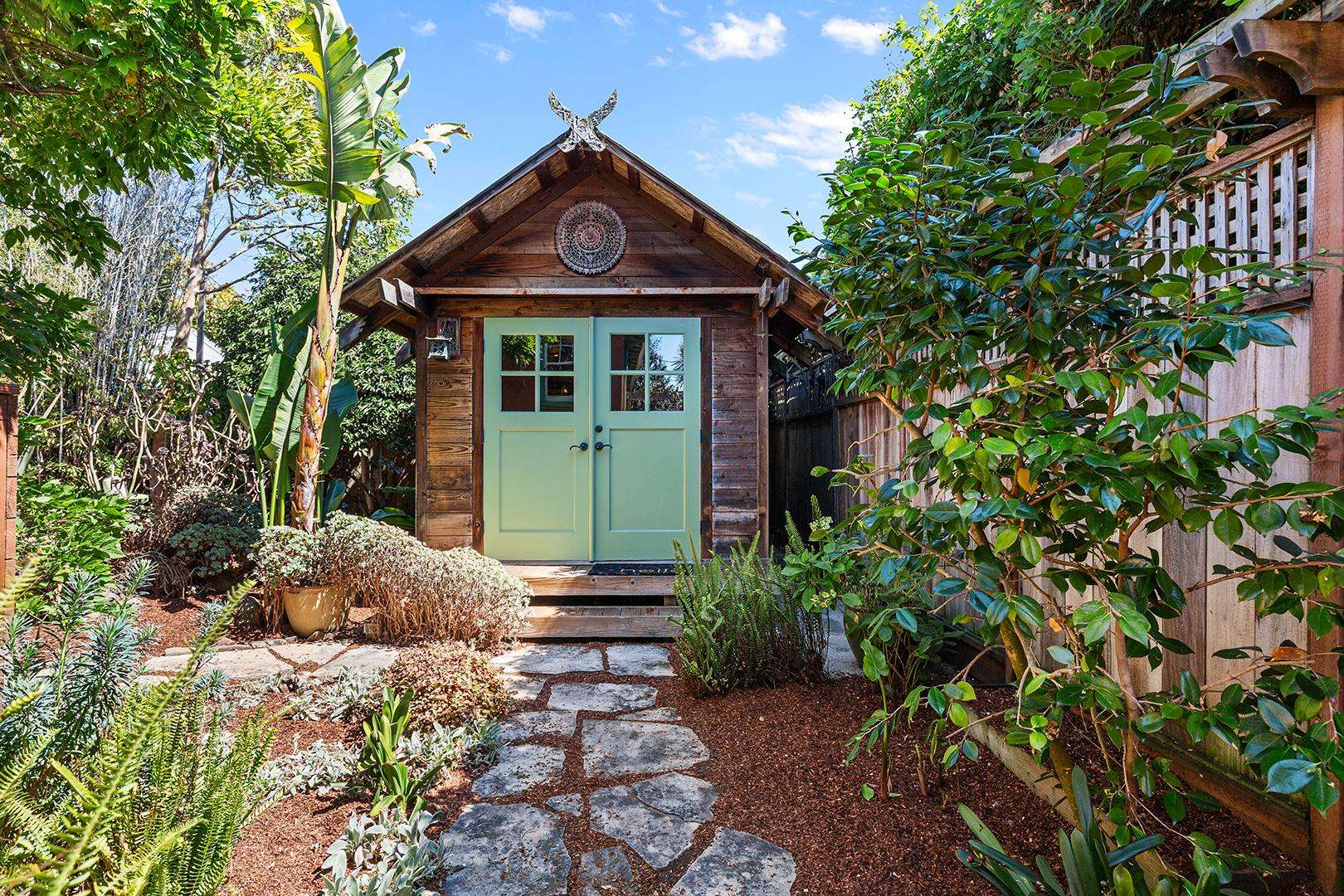 Step outside to discover a lush backyard garden with a trellised deck, flowering wisteria, jacaranda, and seasonal harvests from surrounding trees. At the back of the garden, a serene Asian-inspired artist’s studio invites creativity, reflection, or simply a quiet escape.